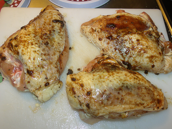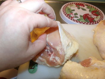 Rub your paste mixture into skin and under the skin. (Gently lift the skin in the same manner that you do a turkey.)